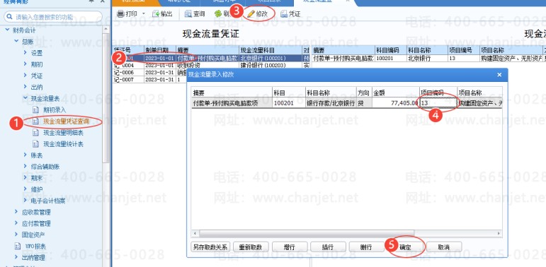 打开总账—-现金流量表—-现金流量凭证查询,查询结果中 选择对应的凭证 点击修改: