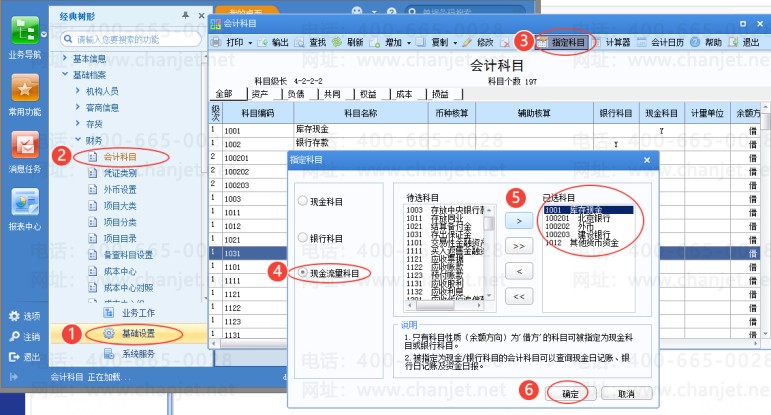 注意事项:若新增了流量科目(例如新增了银行的下级科目)需在指定科目中 把现金流量科目 选一下;