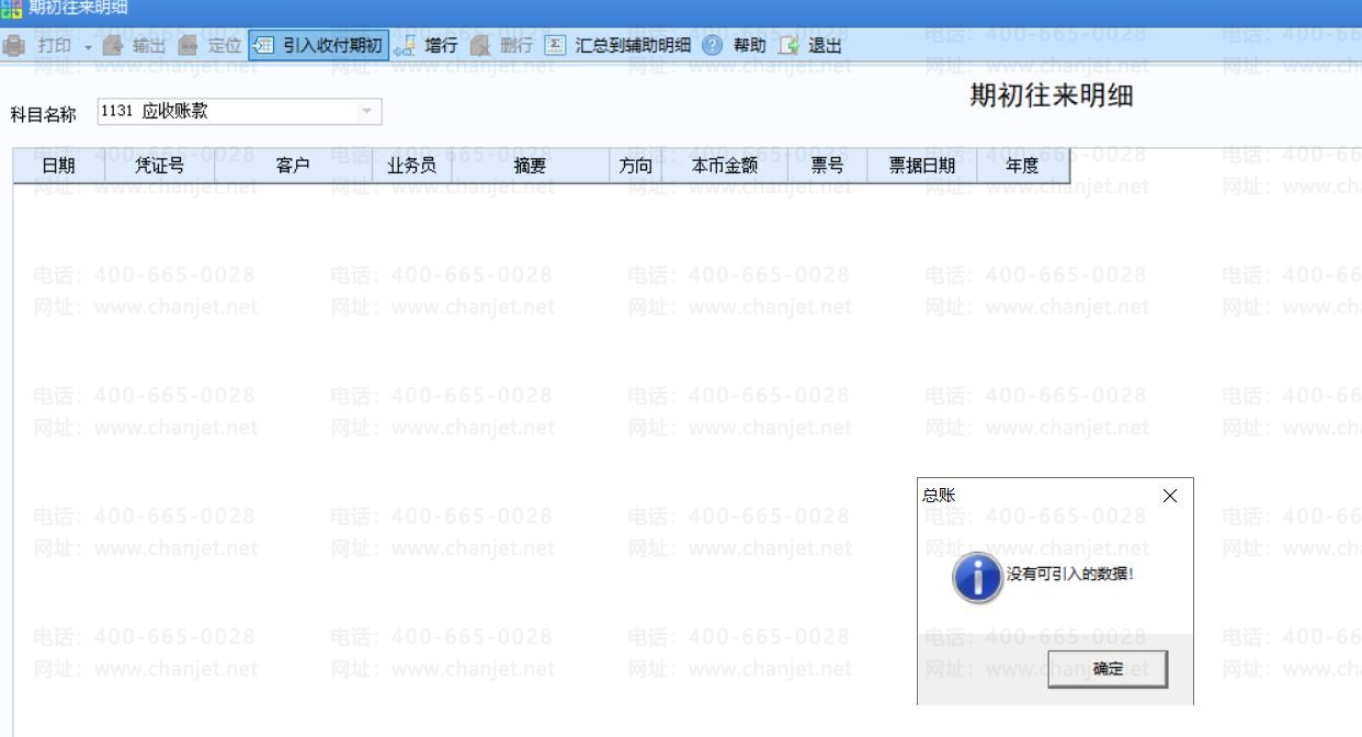 用友u8+16.1时说“启用应收管理摸块.已入录发票期初数,然后我去总应收帐款科目,想引入应收帐款模块的期初数据,提示“没有可引入的数据!”如下图所示