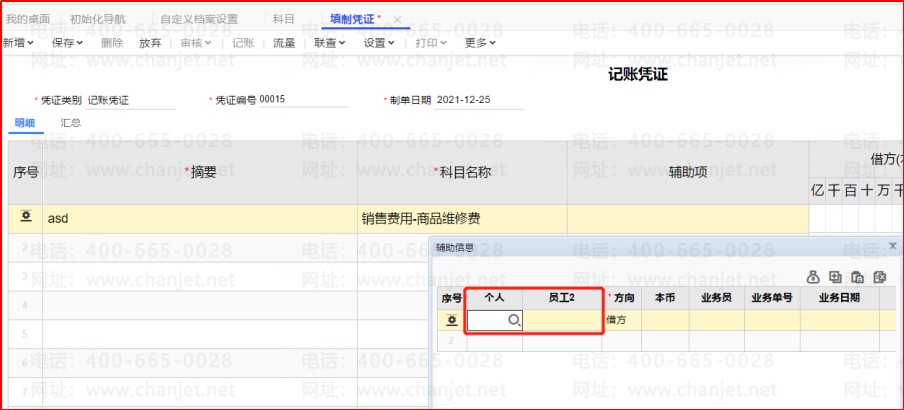 科目辅助核算启用个人辅助核算项之后,再启用扩展辅助核算无法参照员工档案。由于公司产品销售和安装人员不是同一个人,会计科目中需要记录2个人员,启用人员辅助核算后扩展辅助核算无法再次参照员工档案,应该怎么解决呢?