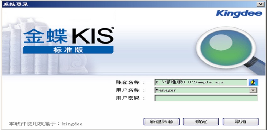 第三步,再次单击桌面【金蝶KIS标准版】快捷图标,即可以登录账套,此时产品标识栏不再显示“演示版”字样。