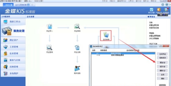 自动转账处理完毕之后,单击〈关闭〉按钮,即可退出自动转账处理,返回期末处理窗口。