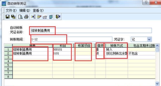 •摘要:同凭证输入方式相同, F7选择或手工输入,我们手工输入“结转制造费用”