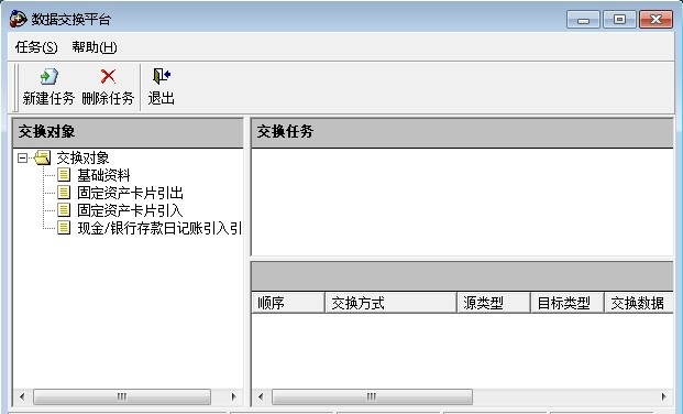 数据交换平台主要实现跨账套之间的基础资料、固定资产数据以及现金/银行存款数据的导入导出