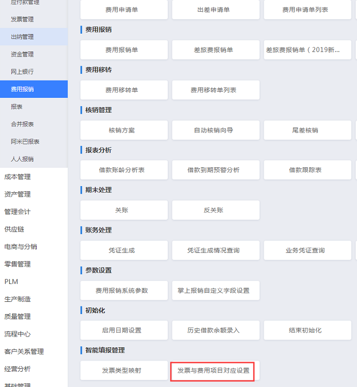 用来控制在报销单上选择发票后自动填写费用项目、差旅费类型。