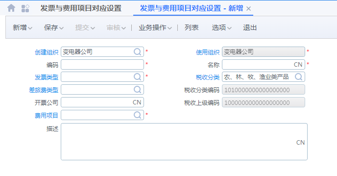 金蝶云星空费用报销-发票与费用项目对应关系表配置