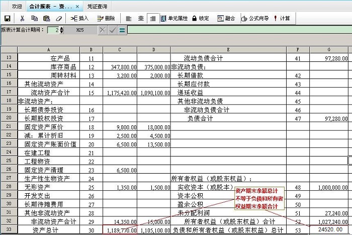 现象:如图所示:资产总计期末余额<>负债和所有者权益(或股东权益)合计期末余额