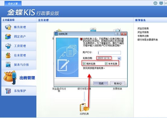 完成后,出纳年末扎账完成。