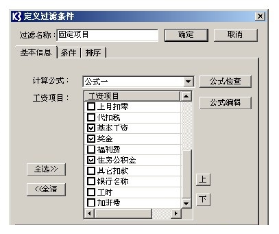 工资数据的输入: 定义过滤名称,,选择一个相应计算公式及所需要的工资项目