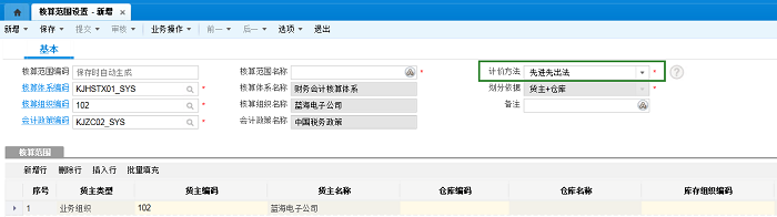 系统路径:存货核算-核算范围-核算范围设置-计价方法