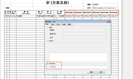 3)         动态字段可以设置成文本并通过公式取数【GetValue("FFIELD0")】,也可以指定动态字段。