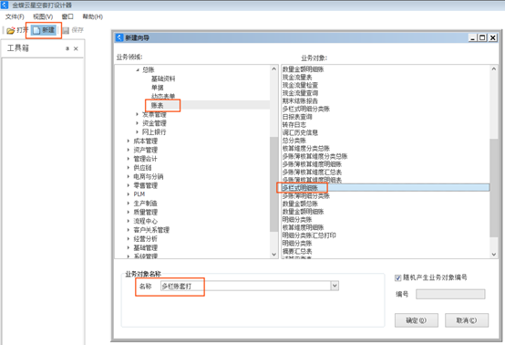 步骤一:打开BOS套打设计器并新建一个多栏式明细账的套打模板