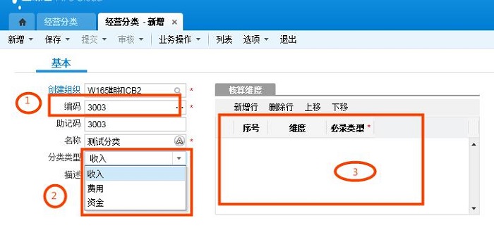 2.分类类型:如首图的2,分类类型目前只有收入、费用、资金。