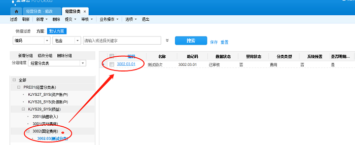 1.2如下图:输入了3002.03,值更新系统会检索有没有上级,如果有上级会把上级的分类类型携带过来,并且锁定分类类型。上下级的分割依据是“.”