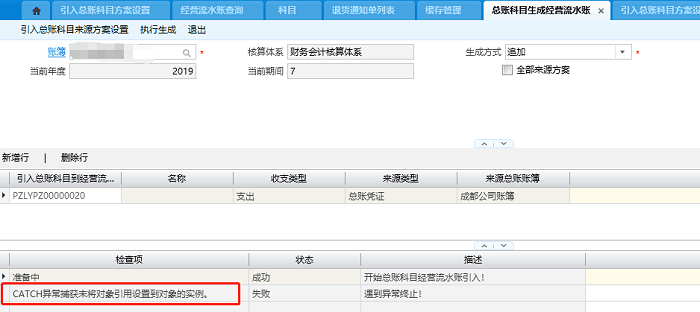 1.未有生成经营流水账,提示生成0条