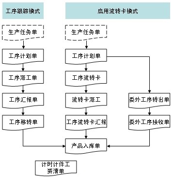 工序跟踪方式则可以通过移转单解决加工产品价值高、体积小、容易丢失的企业,关于工序交接过程必须履行手续的要求,此外可以通过参数设置不按工序顺序做工序汇报,但委外工序处理简单;