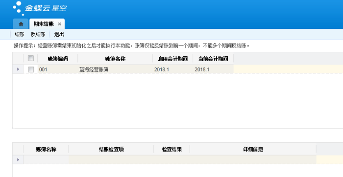 注:未结束初始化的经营账簿,打开期末结账不会显示。