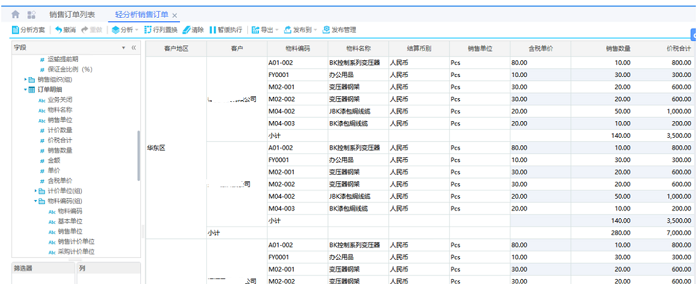 如销售订单列表-》轻分析: