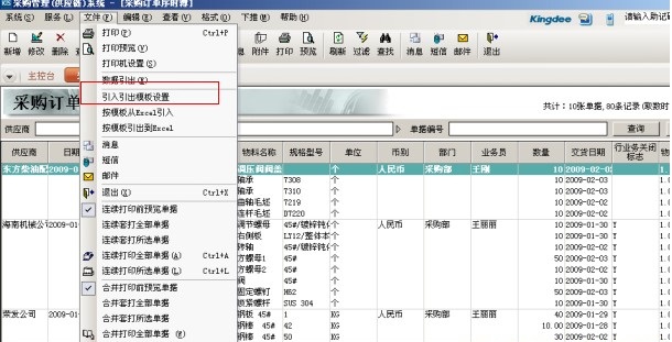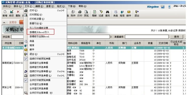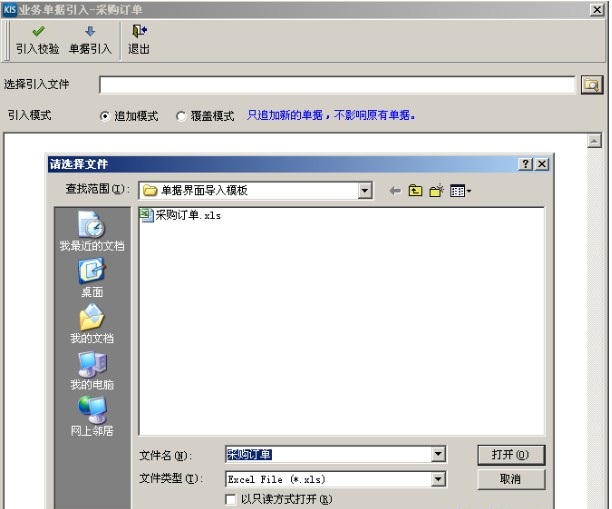 KIS旗舰版在供应链常用单据界面增加了直接从EXCEL导入功能。