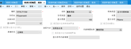 5:配置完核销字段后,针对核销单据字段进行配置: