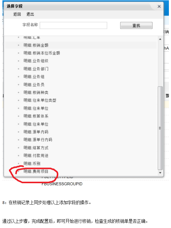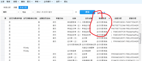 在该界面,需要注意选择相应的核销类型,比如,需要在应付付款核销时,在核销单中添加字段费用项目,则,需要选择的核销类型为应付付款核销。