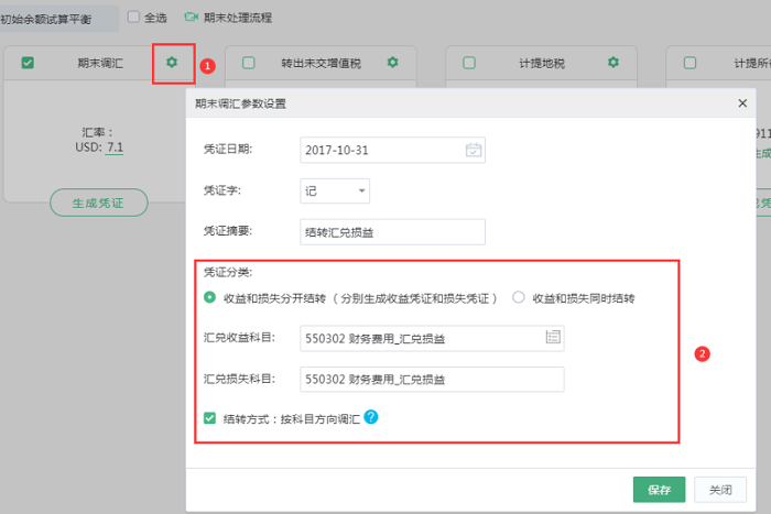 如要修改模板参数,点击右上角【小齿轮】,对期末调汇参数进行修改