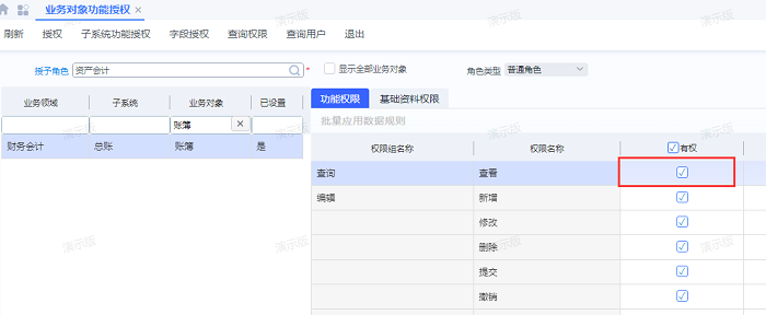 3、需要管理员设置用户对应的账簿查看权限和凭证生成权限