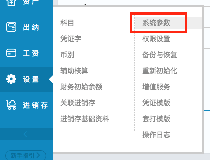 系统参数主要是完成系统相关控制选项的设置,包括科目编码规则、余额方向等。系统参数的每个选项值都将在系统启用后被携带,因此请仔细确认各系统参数的设置是否符合您公司的实际要求,以免因修改某个参数设置而影响整个系统。在系统主界面,点击“设置→系统参数”,进入“系统参数”页面。您可以对“公司名称”、“科目参数”、“账簿”进行修改。