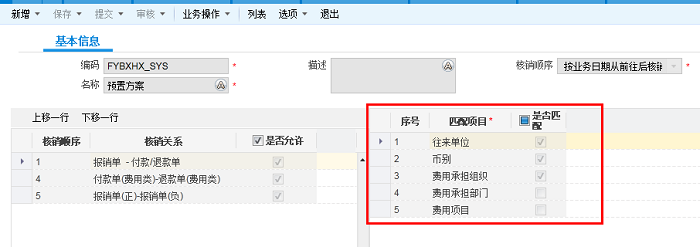 支持匹配核销即自动向导核销,在往来单位相同的情况下,可通过匹配核销,将手工新增的报销单与费用申请借款下推的付款单按相同的往来单位进行核销。
