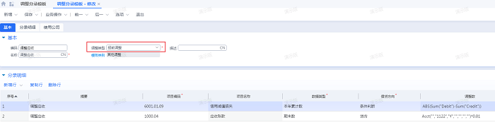 - 调整分录模板增加调整类型,类型为报前调整的分录模板可应用于生成报表调整分录
