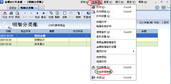 3、再点击右上方【文件】—【引出所有明细账】;