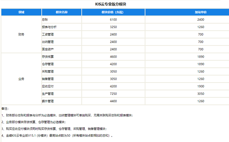 金蝶软件云专业版软件价格