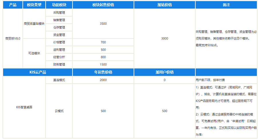 金蝶软件商贸版软件价格