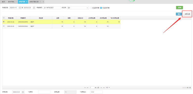 2、筛选【单据日期】、【开票日期】(日期范围选宽一点,以免漏查)、【发票号】等信息,查询重复的发票号