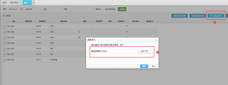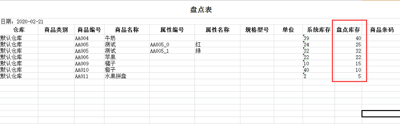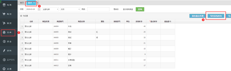 1、导出盘点表;(导出的excel表格,表格有系统库存)