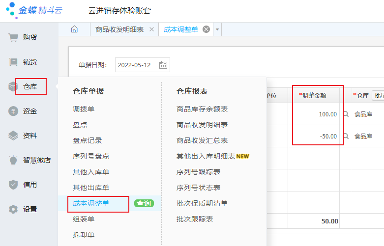 如何操作用金蝶云进销存的成本调整单调整商品成本?