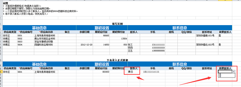 按模版导入时,若不录入联系人,仅录入电话,则无法导入,且录入多个联系人时,要设置【首要联系人】