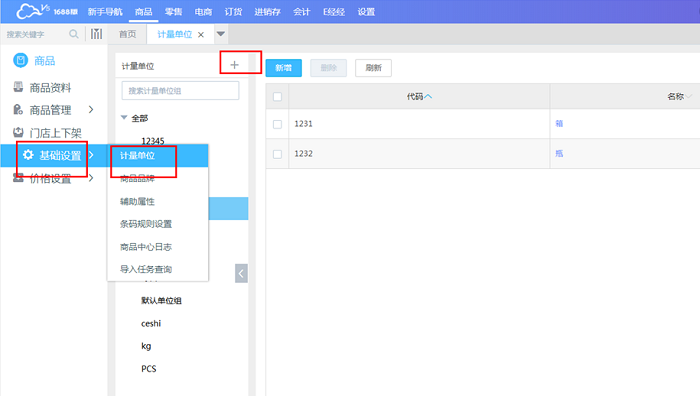 设置多计量单位先在商品-基础设置-计量单位里设置单位组