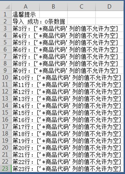 精斗云导入商品部分信息导入失败,提示:某一列的值不能为空