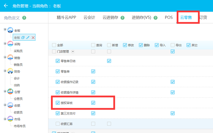精斗云门店中授权审核的作用是什么?