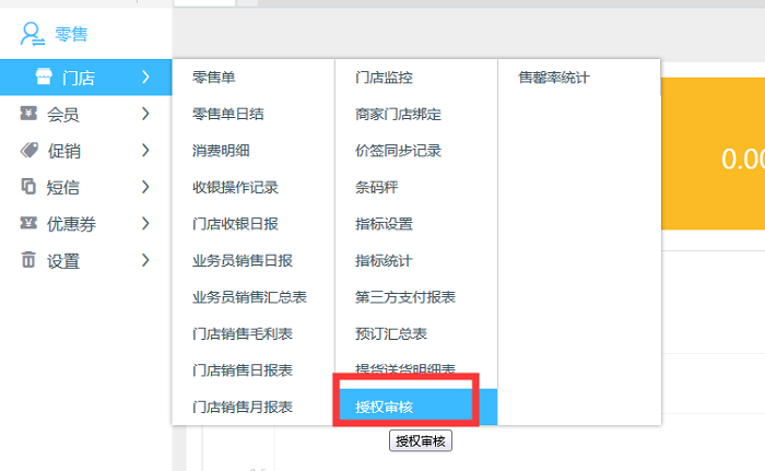 1.门店-授权审核这个功能是控制价格折扣权限的。(在pos开单时,折扣权限不足的时候需要有权限的人来审核控制)