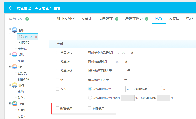 老客户已经执行脚本刷新为默认开启权限,如果需要取消新增会员权限可关闭后,在精斗云POS上执行云同步新权限(仅支持安卓POS,苹果和网页POS暂不增加此功能)