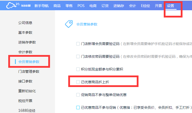 在已优惠商品参与促销的基础上,如果开启“已优惠商品折上折”,则会在享受会员价的基础上继续享受商品折扣(包括指定商品折扣及满就折)。
