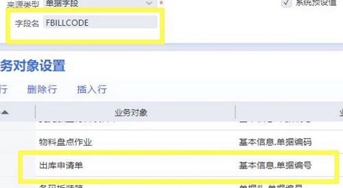 【解决方案】需要在标准的单据编号条码属性下面维护出库申请单对应单据编号字段才行,不能在新增的单据编号条码属性下维护出库申请单。