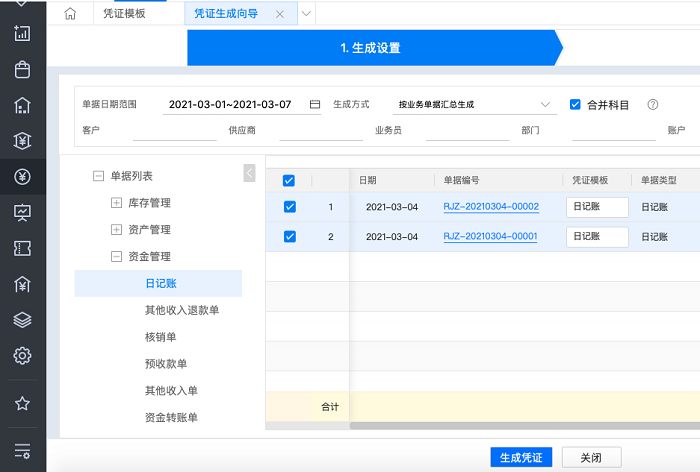 1、在出纳系统录入日记账后,需要将日记账生成凭证,需要先在日记账中指定对方科目
