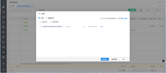 (2)点开引入数据界面,点击【模板管理】-【新增模板】