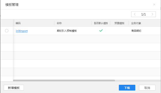 3、支持普通商品以及特性商品的期初维护,可根据业务需求设置期初引入的模板,下载模板后按模板要求维护好对应的信息后再进行引入