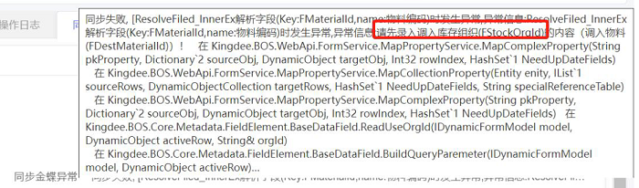 WebApi对接金蝶直接调拨单报错