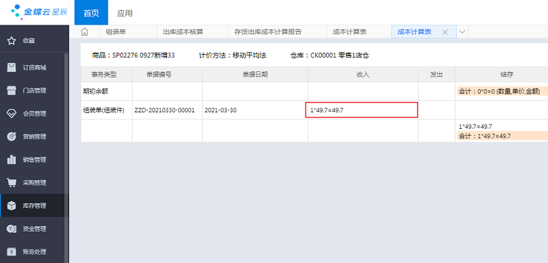 在金蝶云星辰的组装单下录入组装费用后,如果计入到成本?