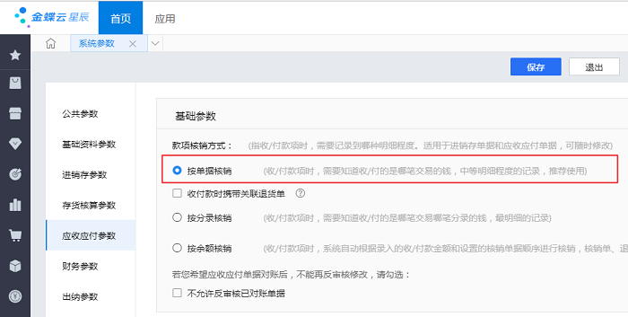 【系统参数】→【应收应付参数】设置如下图所示: